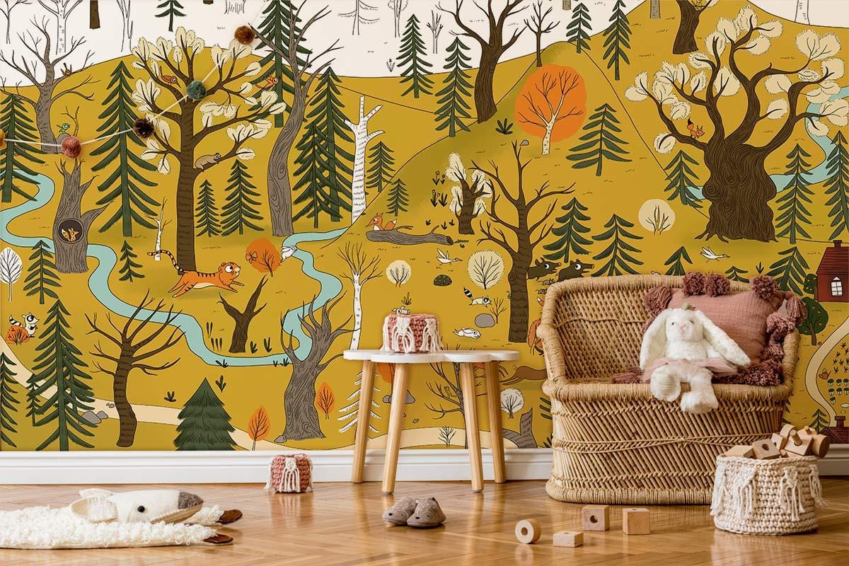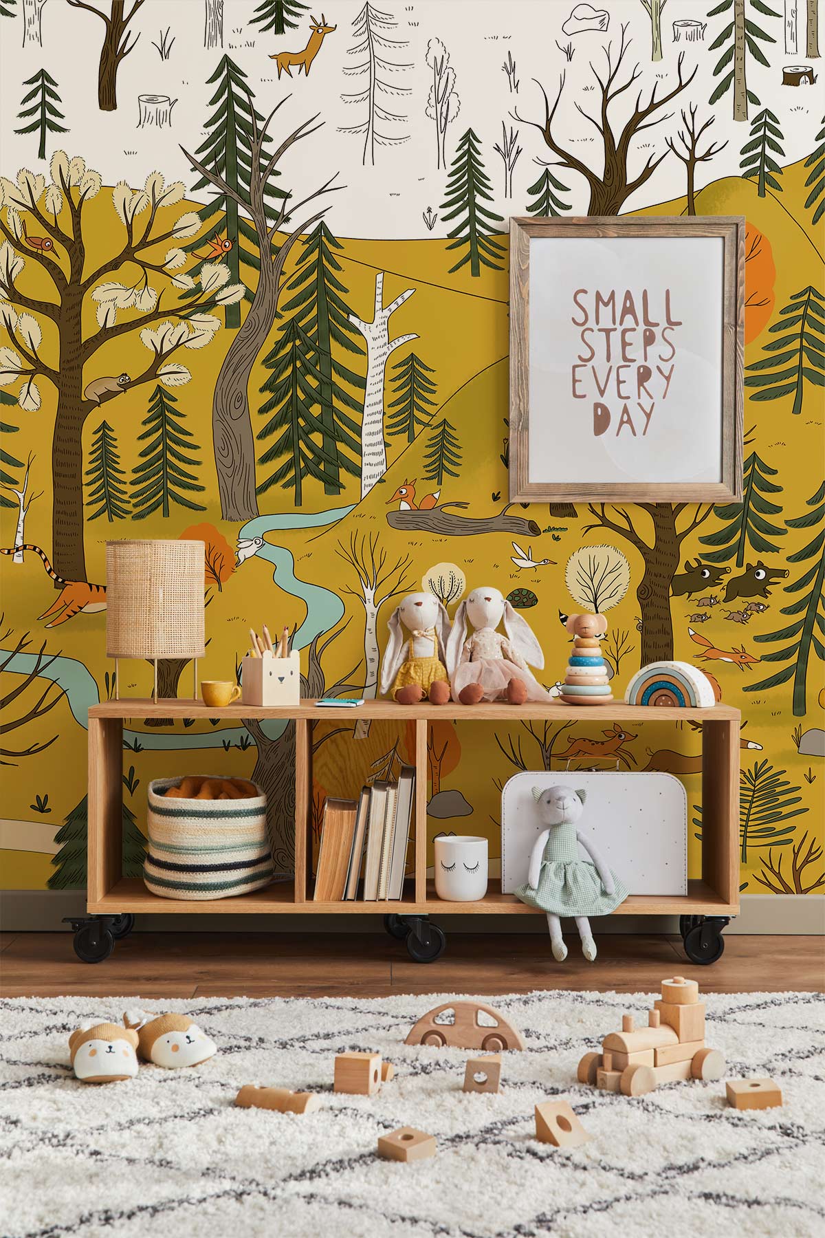 Apportez la nature à l'intérieur avec ce papier peint enchanté des animaux de la forêt fantaisistes, parfait pour stimuler l'imagination. Sa scène charmante de la forêt regorgeant d'animaux délicieux rend tout espace magique. Idéal pour une chambre d'enfant ou une aire de jeux.