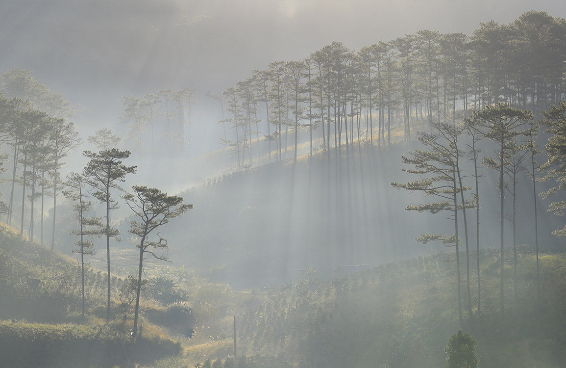 Rehaussez votre espace avec notre papier peint Misty Forest Sunrise, mettant en vedette un paysage serein baigné dans une douce lumière du matin. Parfait pour créer une toile de fond tranquille dans n'importe quelle pièce, ce papier peint offre un mélange de la beauté de la nature et d'un design artistique.