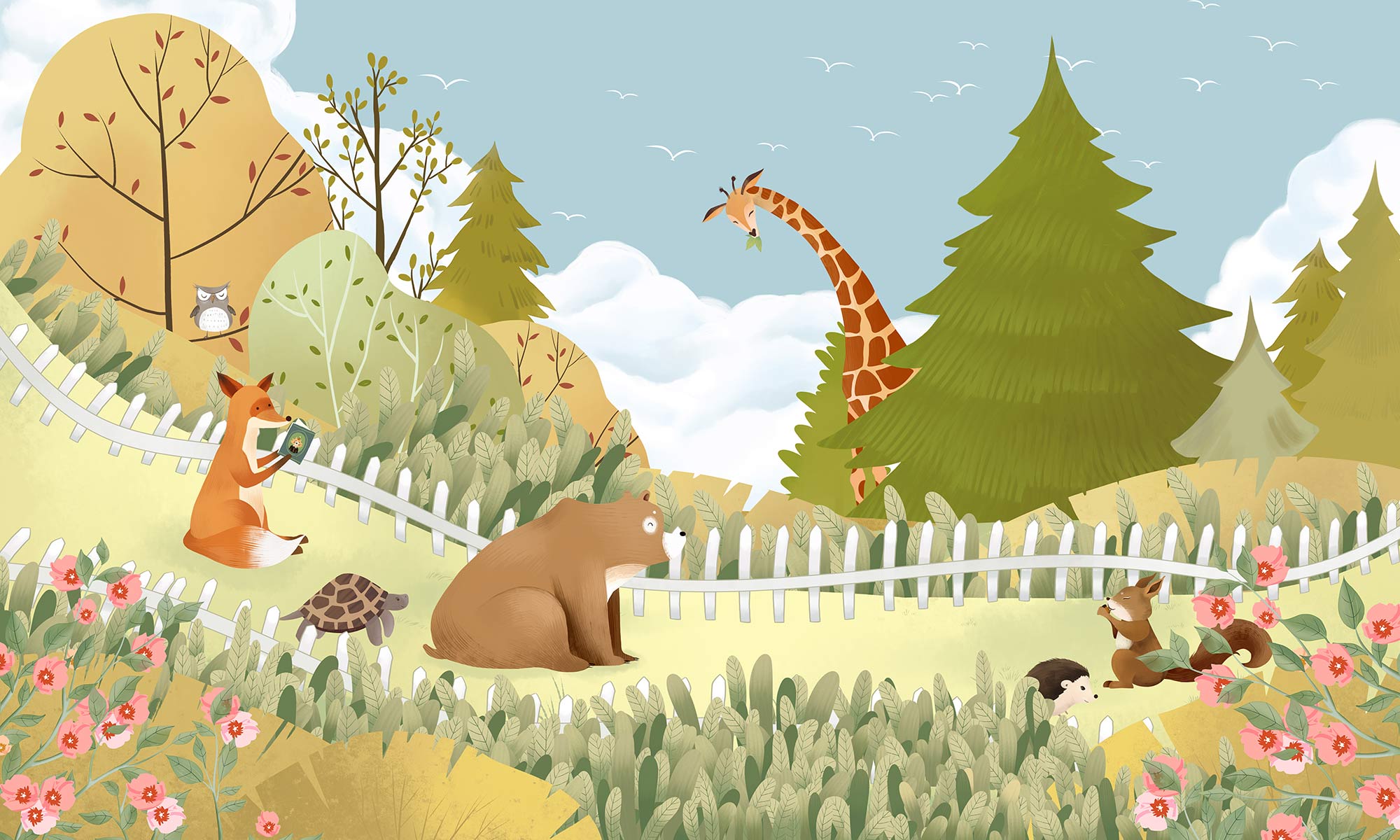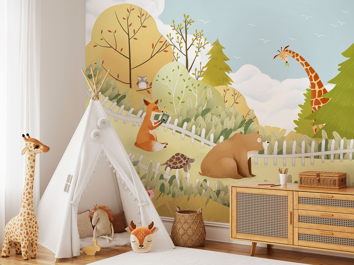 Transformez la chambre de votre enfant en une forêt enchantée avec ce papier peint à motif d'animaux des bois joyeux. Mettant en vedette des renards amicaux, des girafes et d'autres habitants de la forêt, ce papier peint est parfait pour créer un espace fantaisiste et accueillant.