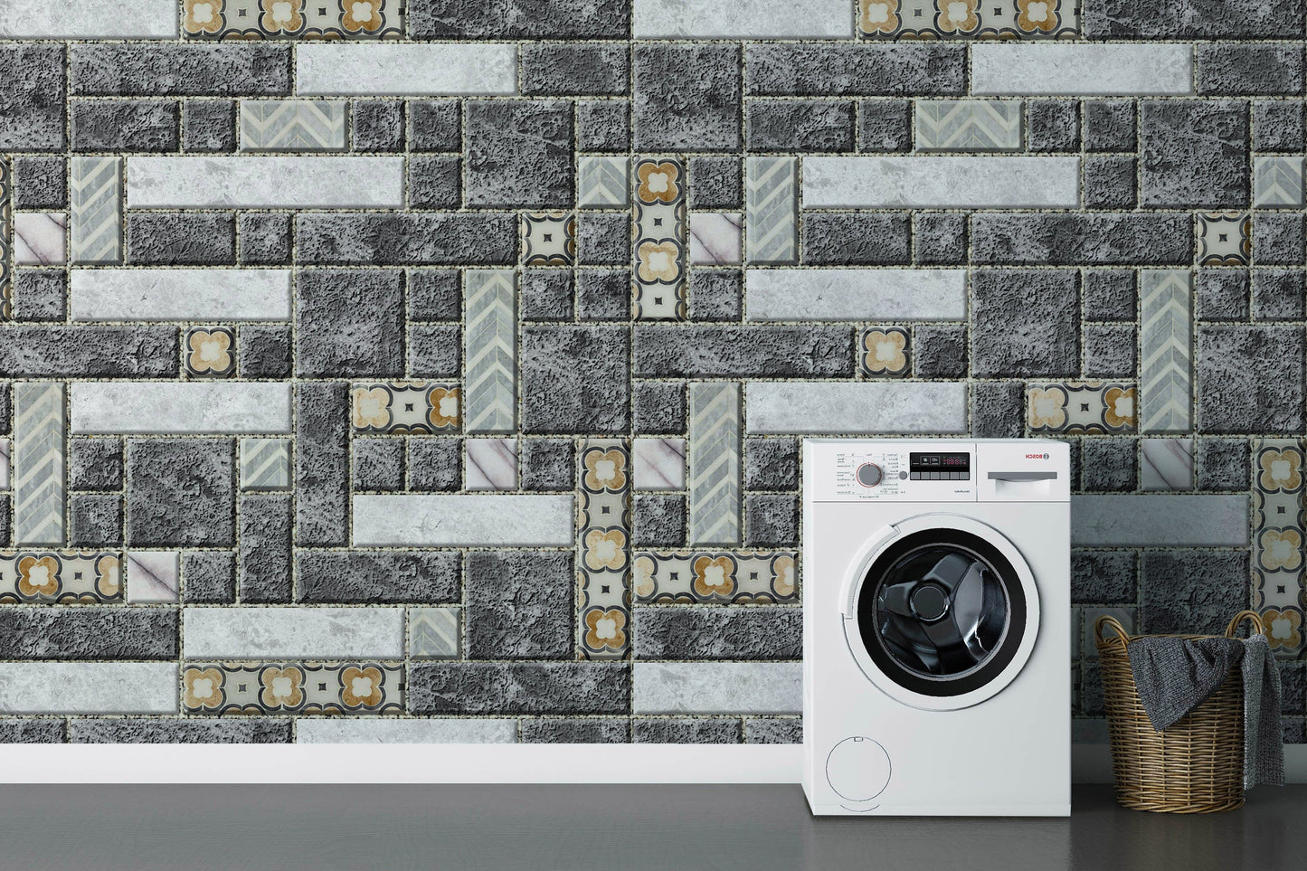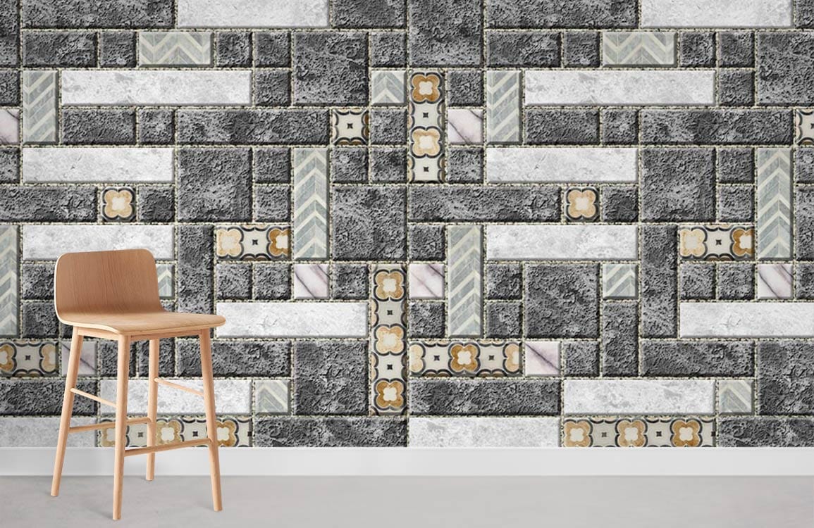 Rehaussez votre espace avec notre papier peint effet pierre géométrique moderne offrant une touche contemporaine à un design classique. Les motifs géométriques complexes imitent une mosaique de pierre sophistiquée, idéale pour créer un mur d'accent saisissant.