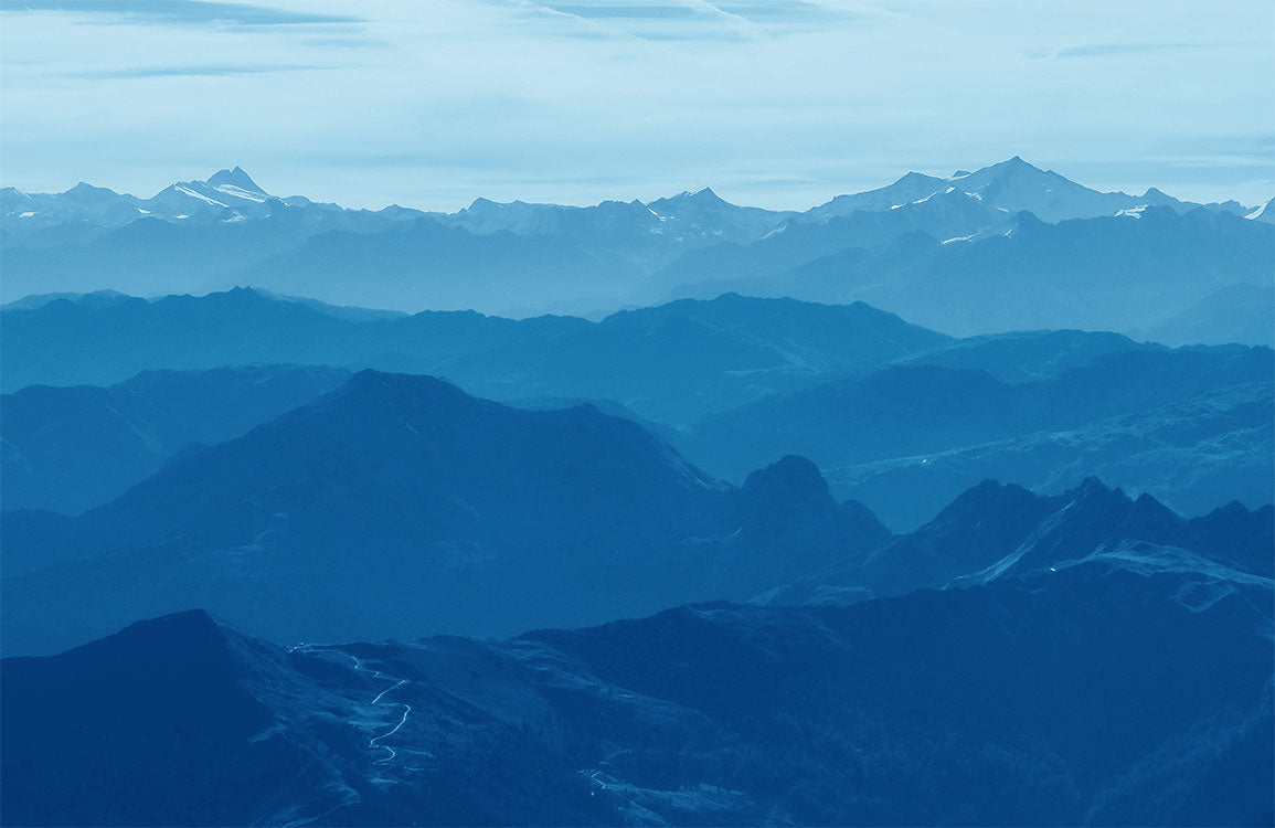Transformez votre espace avec notre papier peint Paysage de Montagne Sereine Bleue. Cette scène à couper le souffle amène la tranquillité de la nature à l'intérieur, parfait pour créer un refuge paisible dans n'importe quelle pièce. Les tons bleus frais et les chaînes de montagnes brumeuses offrent une sensation d'espace, prolongeant la profondeur visuelle de vos murs.