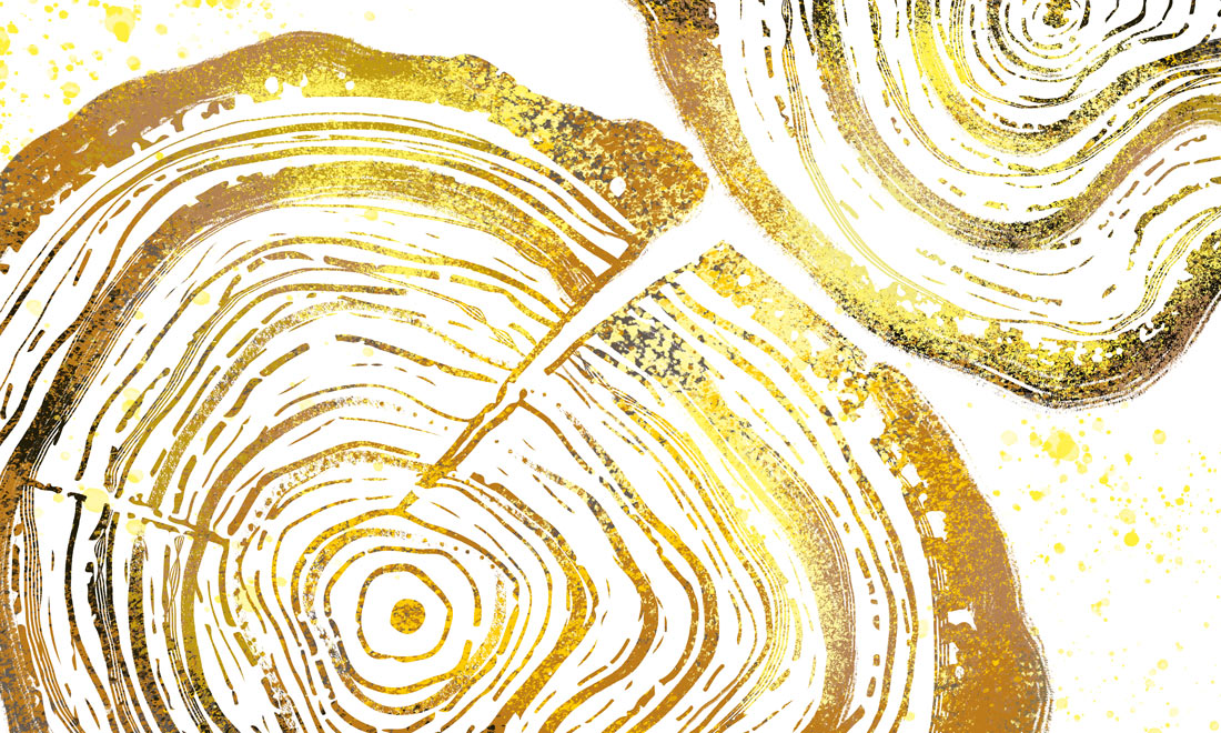 Rehaussez votre espace avec ce superbe papier peint en forme d'arbre abstrait doré, présentant des dessins complexes rappelant les cernes de croissance des arbres, avec une finition métallique étincelante. Idéal pour créer un mur d'accent luxueux qui dégage sophistication et chaleur dans n'importe quel environnement.