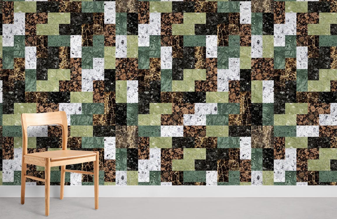 Rehaussez votre intérieur avec notre papier peint moderne au motif de liège géométrique. Ce design contemporain présente un mélange harmonieux de nuances neutres, vertes et noires, idéal pour créer un point focal dans des espaces minimalistes ou contemporains.