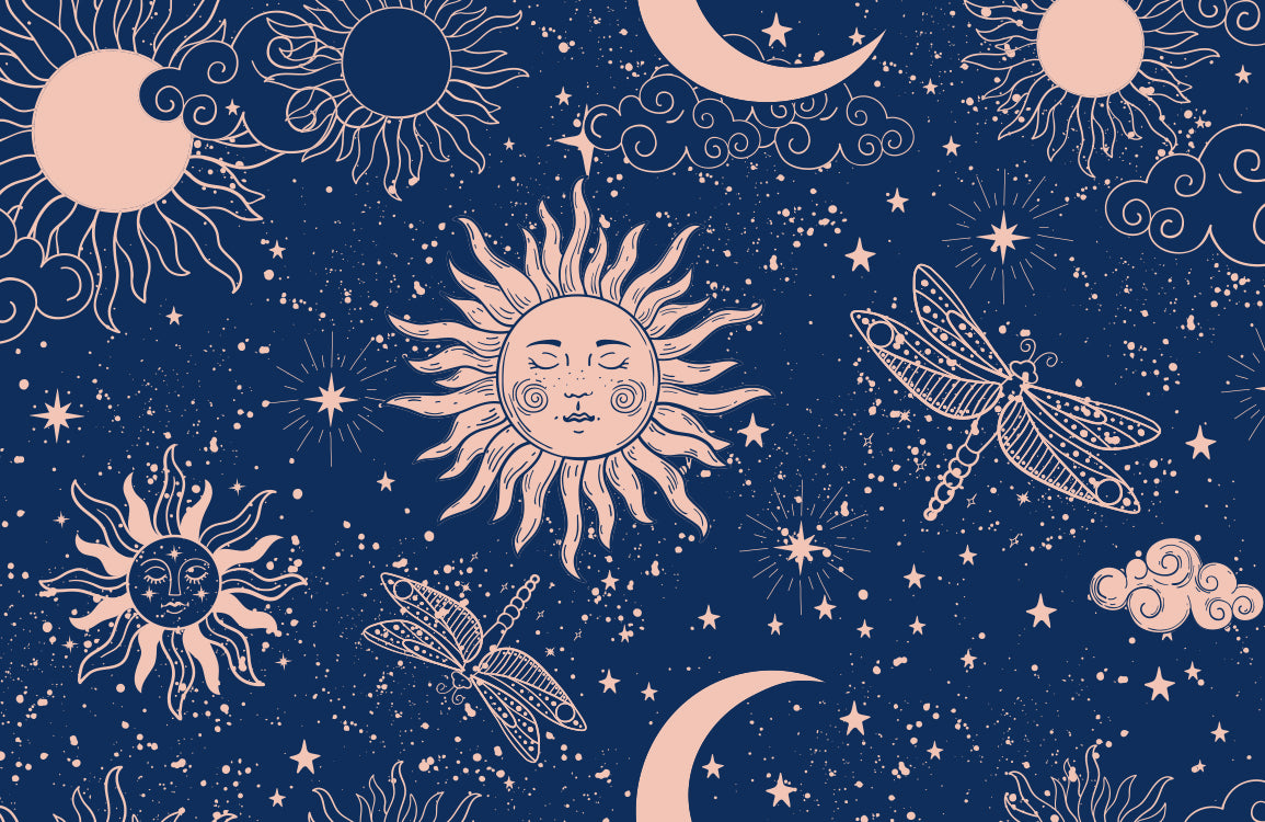 Ornez votre espace avec ce superbe papier peint céleste représentant le soleil, la lune et les étoiles, parfait pour créer une atmosphère cosmique rêveuse. Son design unique met en valeur des illustrations détaillées de corps célestes sur un fond bleu foncé, apportant une touche mystique à n'importe quelle pièce.