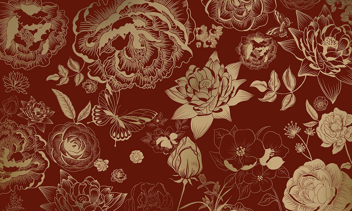 Transformez votre espace avec notre luxueux papier peint Art Déco floral rouge, orné de motifs botaniques dorés complexes sur un fond rouge profond. Parfait pour créer une déclaration audacieuse et inspirée du vintage dans n'importe quelle pièce, ce papier peint dégage élégance et charme intemporel.