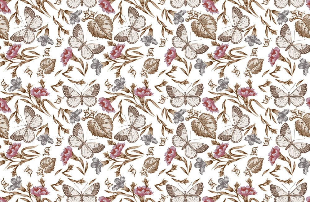 Ce luxueux papier peint présente un élégant mélange de papillons détaillés et d'éléments floraux sur un fond neutre, créant une esthétique intemporelle pour tout espace. Parfait pour ajouter une touche de sophistication et de charme naturel à vos intérieurs.