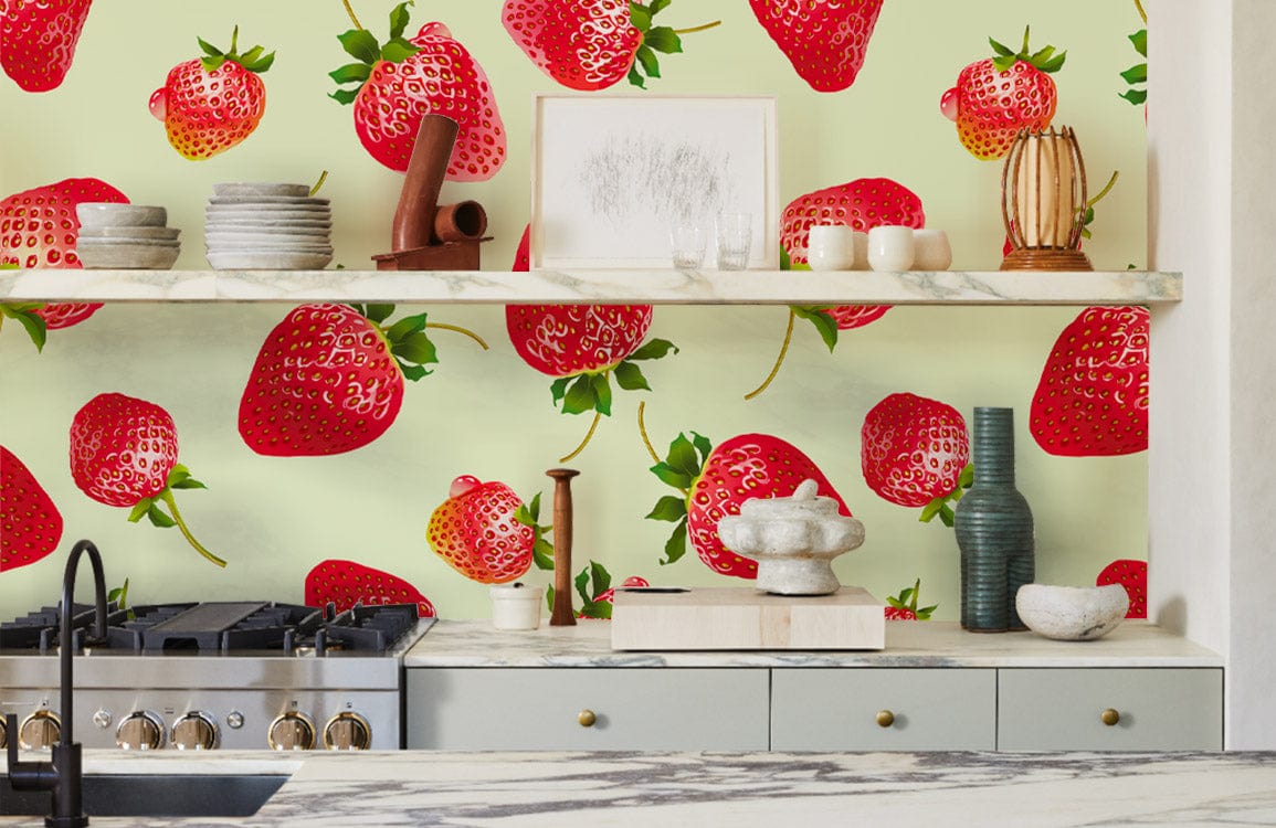 Exquise et ludique, ce papier peint à motif de fraises apporte une brise de fraîcheur à toute chambre d'enfant ou nursery. Les tons rouge vif et vert sur un fond clair créent une atmosphère animée dans votre espace qui encourage la créativité et la joie.