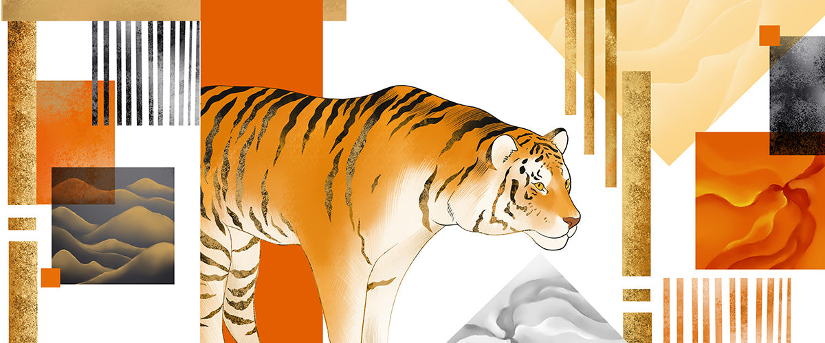 Rehaussez votre espace avec ce frappant papier peint géométrique abstrait tigre. Présentant des tons orange audacieux et des formes géométriques complexes, ce papier peint apporte une touche moderne et vibrante à n'importe quelle pièce. Parfait pour créer un point focal ou ajouter du caractère.