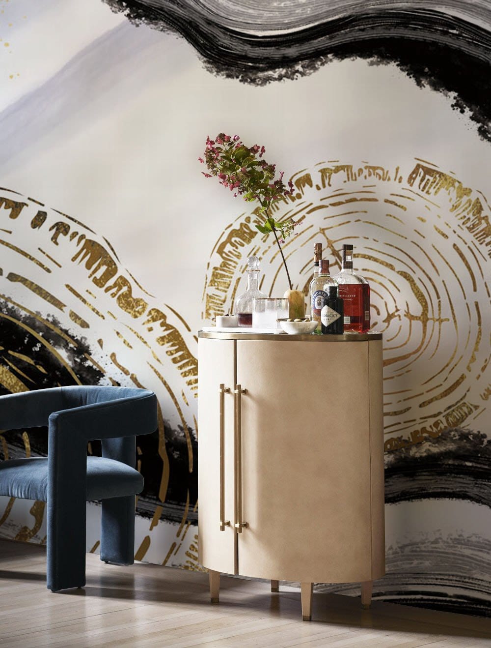 Rehaussez vos intérieurs avec ce luxueux papier peint abstrait aux tourbillons dorés. Ses larges coups de pinceau et ses accents métalliques ajoutent une touche d'élégance, rendant toute pièce plus sophistiquée et moderne. Parfait pour créer un mur d'accent saisissant.