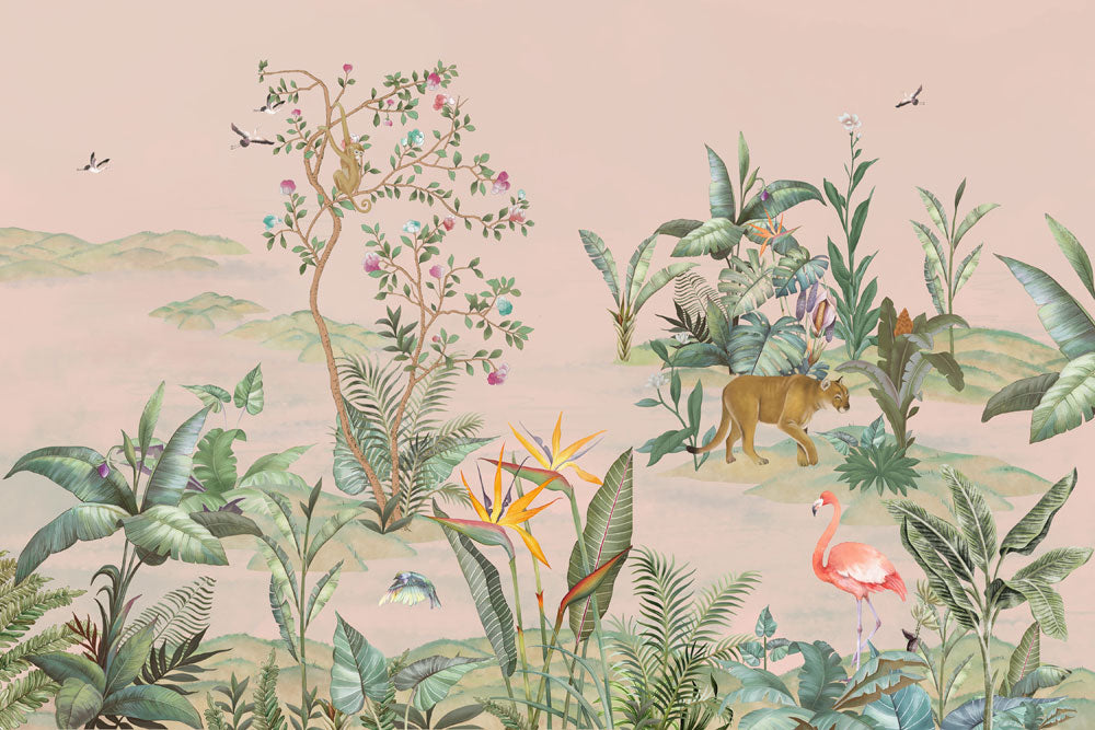 Transformez n'importe quelle pièce en un refuge exotique avec notre Papier peint Tropical Jungle Animal. Ce papier peint apporte une touche de sérénité de la nature à l'intérieur, mettant en scène des flamants roses vibrants, une végétation luxuriante et des animaux sauvages majestueux dans un cadre pittoresque.