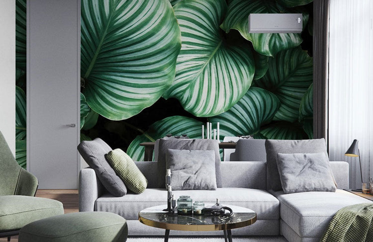 Mura di carta da parati con foglie tropicali verdi smeraldo
