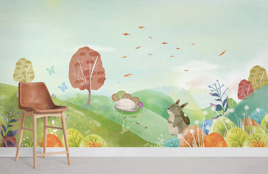 Muro di carta da parati con animali del bosco fantasiosi per bambini