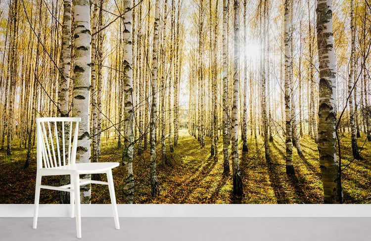 Murale di Carta da Parati della Foresta di Betulle Soleggiate