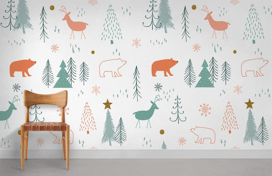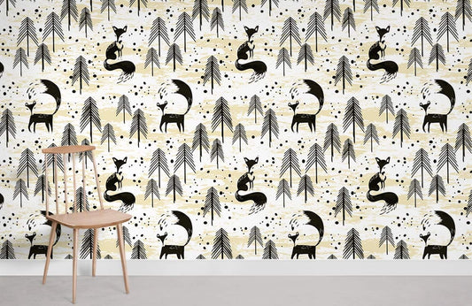 Muro di wallpaper per bambini Foresta Bizzarra e Cervo