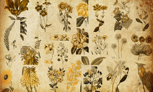 Muro in Carta da Parati con Illustrazione Botanica Vintage