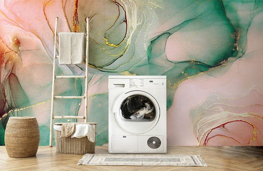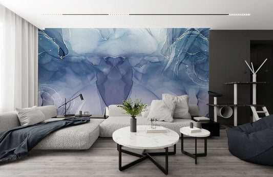 Carta da parati murale in inchiostro marmorizzato oro astratto
