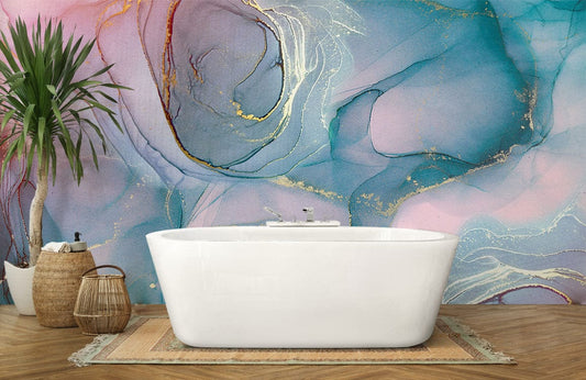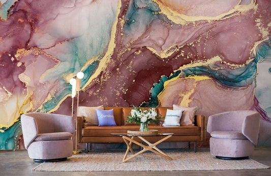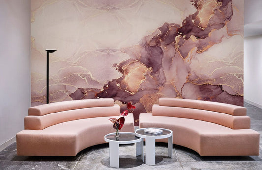 Muro in Carta da Parati Marmo Oro Viola Lussuoso