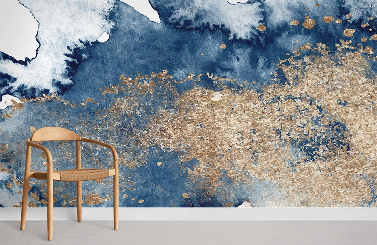 Muro Wallpaper Astratto Acquerello Blu Navy e Oro