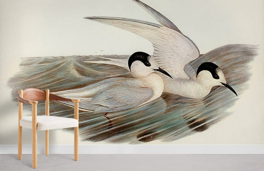 Carta da parati murale acquerellata di eleganti uccelli marini