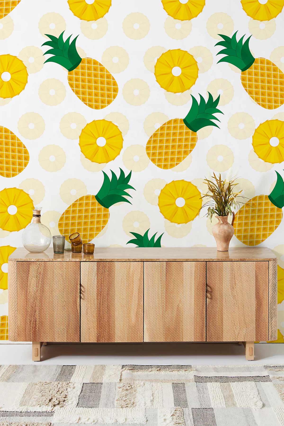 Illumina il tuo spazio con questa vivace carta da parati ananas solare, caratterizzata da un divertente design di frutta tropicale. Perfetta per aggiungere un tocco di allegria e energia a qualsiasi stanza.