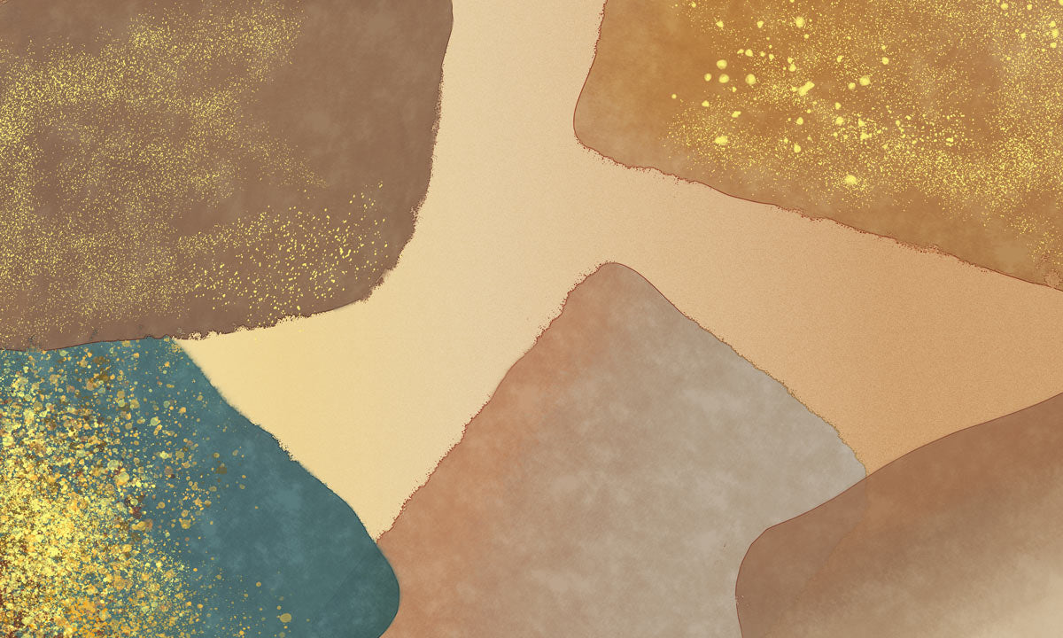 Eleva il tuo spazio con questa carta da parati geometrica astratta che fonde tonalità di oro, beige e teal per un'atmosfera lussuosa. Perfetta per aggiungere un'ambientazione moderna ma accogliente con un tocco di glamour metallico a qualsiasi stanza.