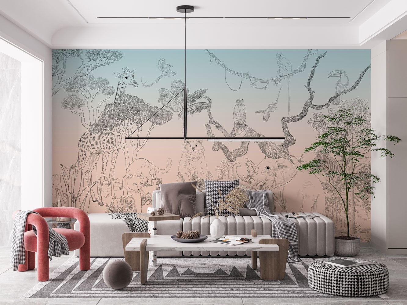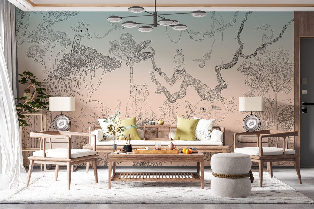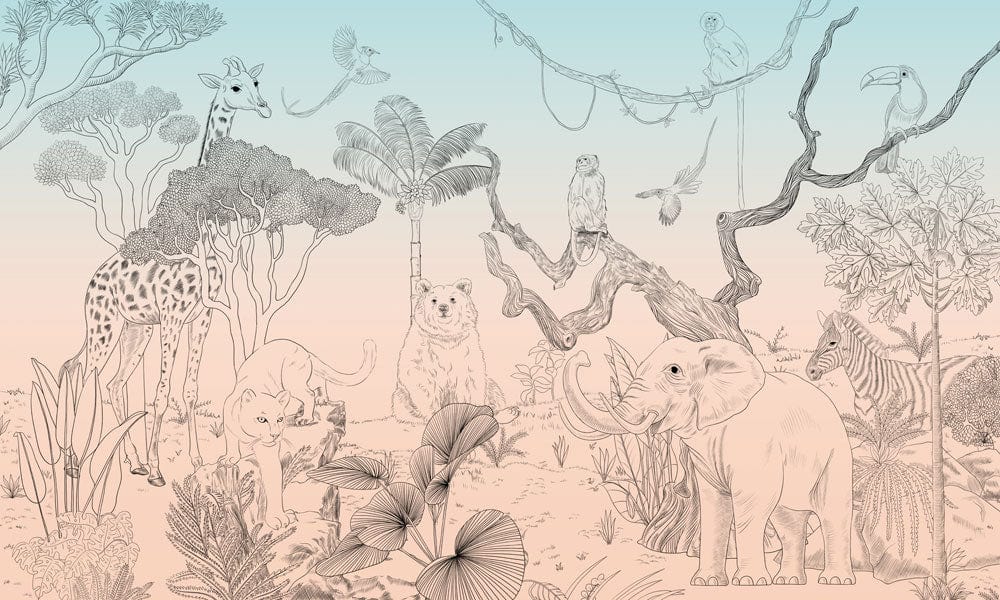 Inizia un viaggio decorativo fantasioso con il nostro Ever Wallpaper Safari Adventure Animal Sketch. Perfetto per una nursery o una stanza dei giochi, questa affascinante carta da parati presenta animali della safari disegnati in una morbida palette neutra, creando uno spazio sereno e ispiratore.