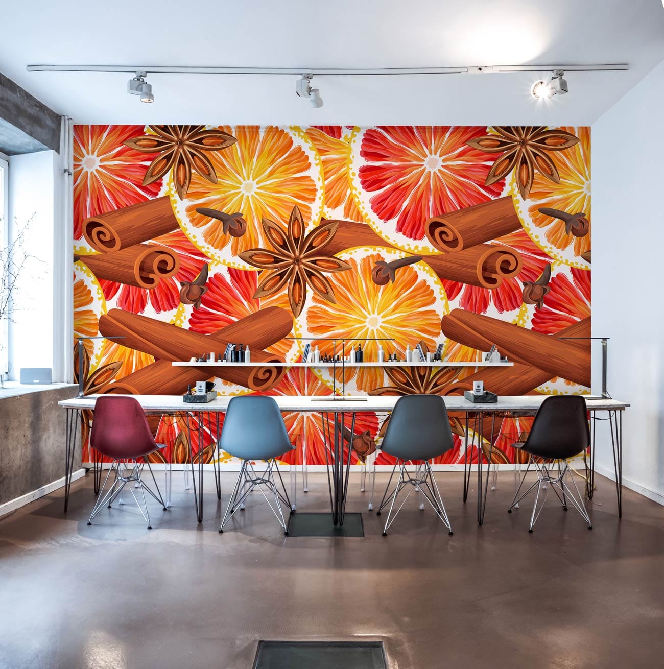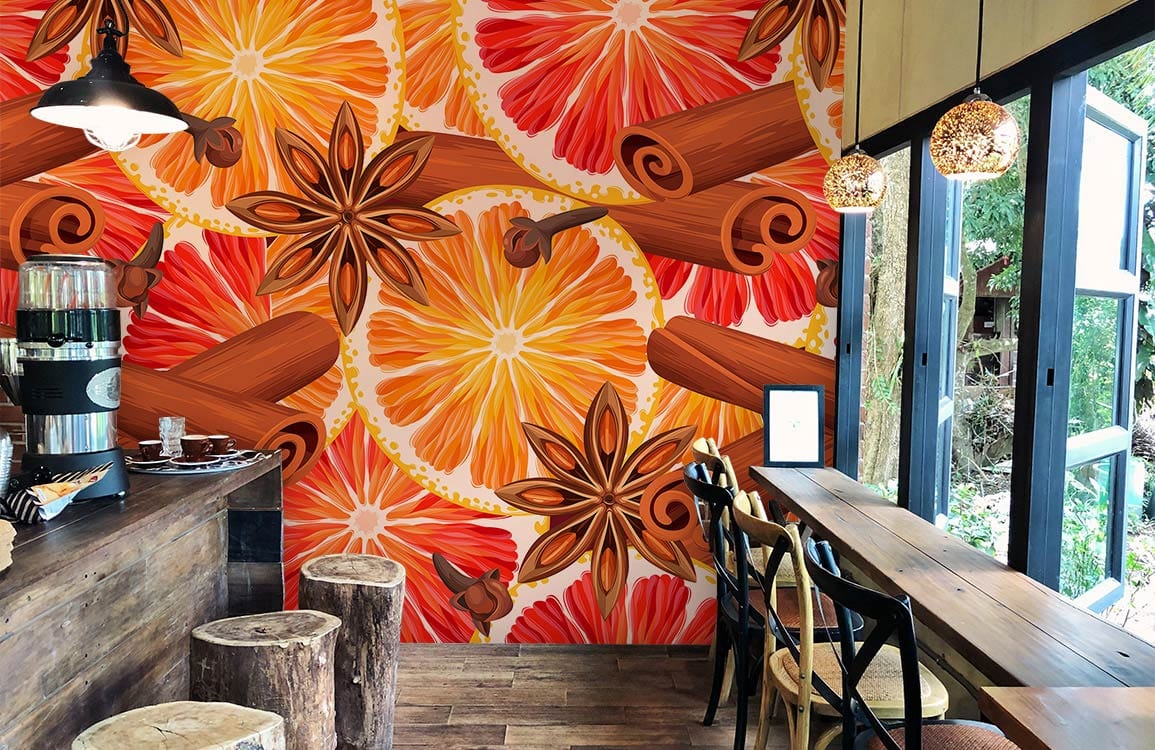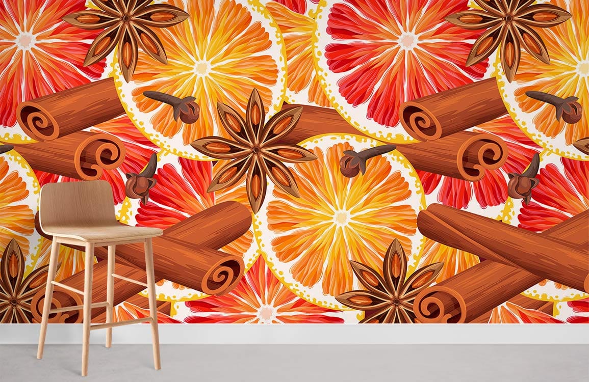 Infondi calore nel tuo spazio con la nostra carta da parati Spicy Cinnamon Citrus Floral. Perfetta per creare un'atmosfera accogliente e vivace, questa carta da parati presenta un delizioso mix di stecche di cannella e fiori di agrumi su uno sfondo decorative. Ideale per ravvivare qualsiasi stanza.