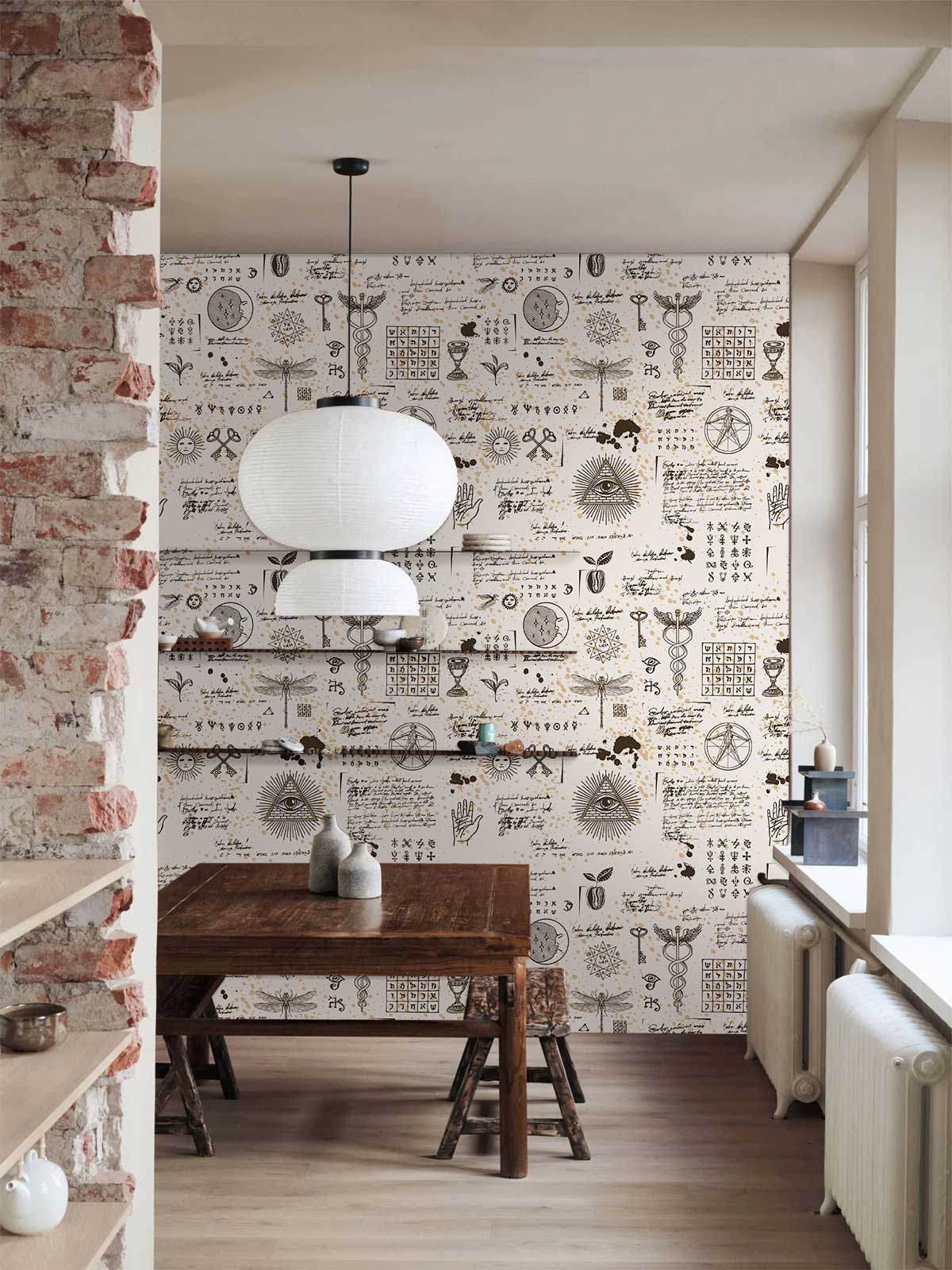 Infondi un tocco dell'arcano nel tuo spazio con la nostra carta da parati Vintage Mystical Symbols. Questo design eclettico presenta una serie di icone esoteriche e motivi alchemici, perfetti per creare uno sfondo affascinante in qualsiasi stanza. Ideale per chi cerca un'atmosfera unica e stimolante.