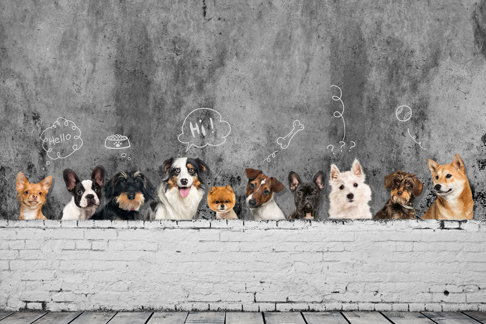 Aggiungi un tocco di fantasia al tuo spazio con la nostra Charming Canine Graffiti Wall Wallpaper. Perfetto per gli amanti dei cani, questo design giocoso presenta una serie di cuccioli amichevoli su uno sfondo urbano sorprendente, portando un'atmosfera unica e moderna in qualsiasi stanza.