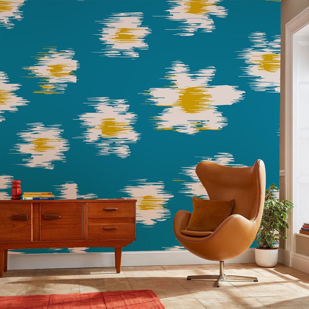 Infondi il tuo spazio abitativo con un tocco di colore con la nostra Ever Wallpaper Abstract Teal Brushstroke. Questo design vivace presenta pennellate espressive bianche e dorate su uno sfondo teal audace, offrendo un tocco moderno e artistico a qualsiasi stanza.