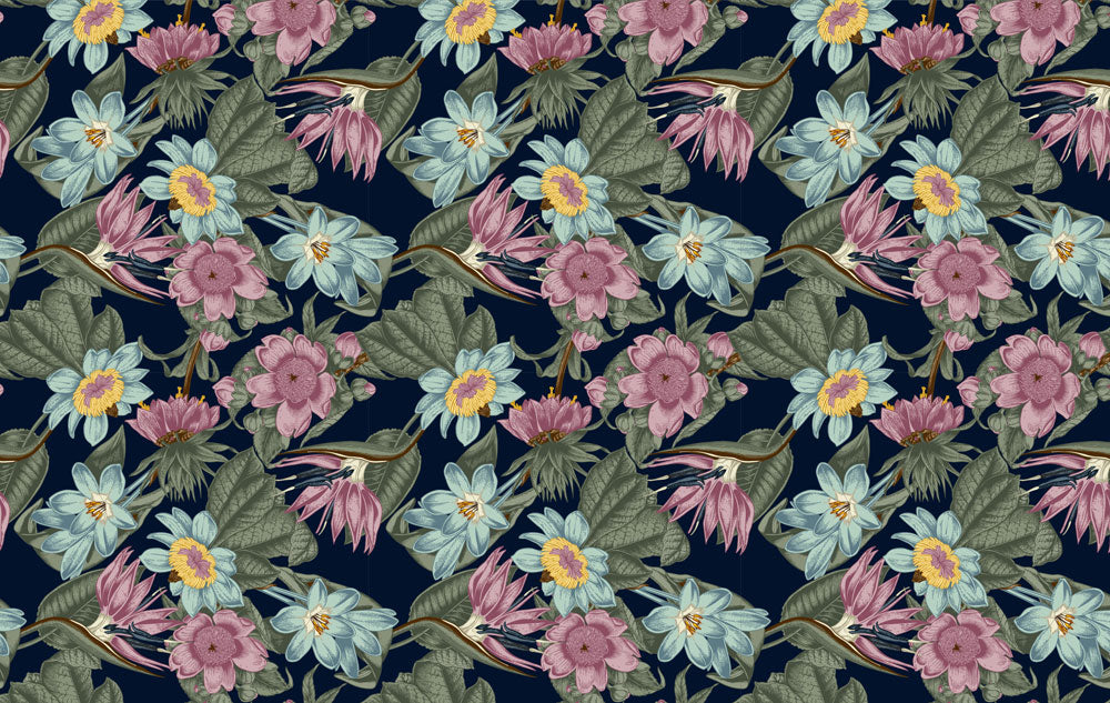 Trasforma il tuo spazio con il nostro Vintage Botanical Navy Floral Wallpaper, che presenta eleganti fiori in fiore su uno sfondo blu navy profondo. Perfetto per aggiungere un tocco di sofisticatezza e un design floreale classico al tuo arredamento interno.