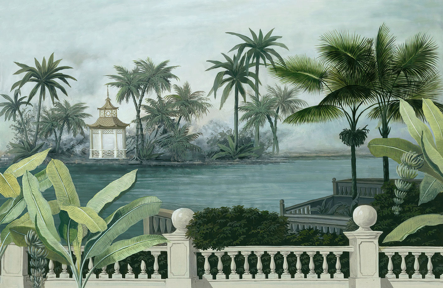 Trasforma il tuo spazio in un'oasi tropicale serena con la nostra carta da parati a tema gazebo. Perfetta per portare un'atmosfera esterna all'interno, questo design presenta una vegetazione lussureggiante, dettagli architettonici eleganti e acque calde, creando un rifugio pacifico in qualsiasi stanza.