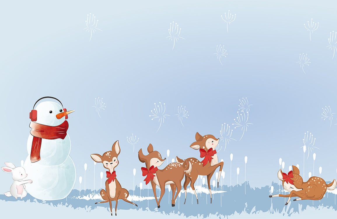 Trasforma la stanza di tuo figlio con questa deliziosa e serena carta da parati di un buffo pupazzo di neve e amici animali. Perfetta per creare un'atmosfera accogliente e giocosa che stimola l'immaginazione.