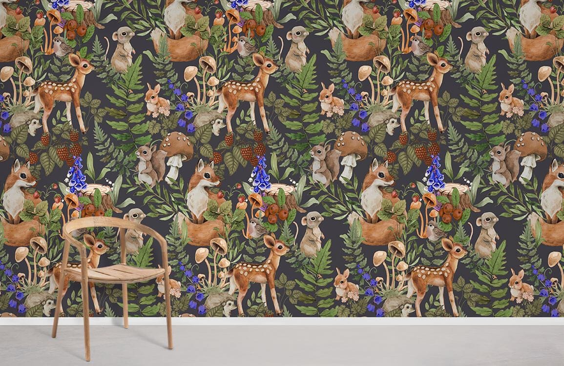 Trasforma il tuo spazio con la nostra Ever Wallpaper Enchanted Deer Botanical Forest, caratterizzata da un motivo intricato di adorabili cervi circondati da un fogliame e fiori lussureggianti. Perfetto per creare un'atmosfera fantastica e ispirata alla natura in qualsiasi stanza.
