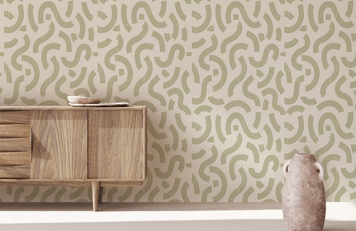 Rivitalizza il tuo spazio con il nostro wallpaper astratto geometrico verde, che offre un tocco moderno al decor classico. Perfetto per creare una parete d'impatto con il suo motivo unico e i toni verdi rilassanti. Di alta qualità e facile da installare, ideale per un rapido rinnovo della stanza.