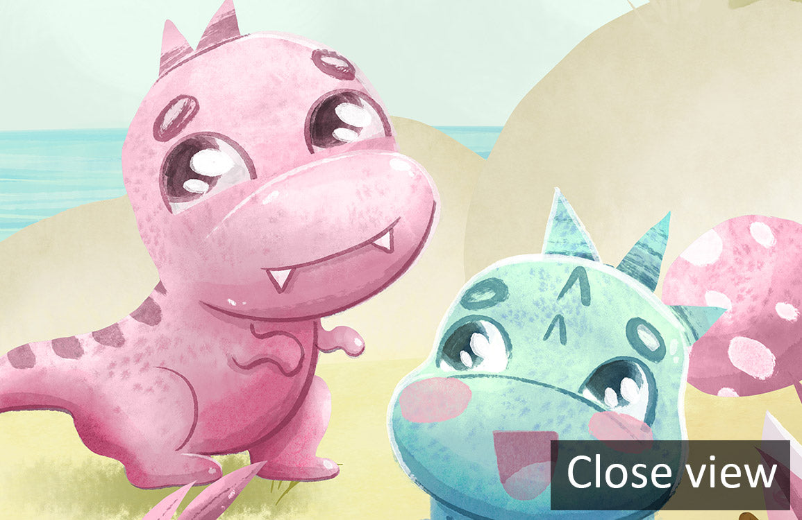 Trasforma la stanza di tuo figlio con la nostra carta da parati da spiaggia con dinosauri fantastici. Questo design giocoso presenta dinosauri amichevoli che si divertono tra la vegetazione tropicale con uno sfondo di spiaggia rilassante, perfetto per stimolare l'immaginazione e creare un'atmosfera divertente e vibrante.