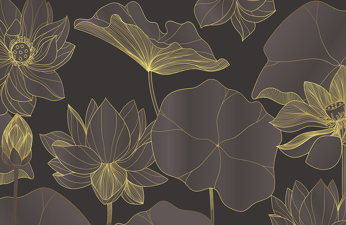 Trasforma qualsiasi stanza con la nostra carta da parati di lusso, caratterizzata da sofisticati contorni floreali dorati su uno sfondo profondo ed elegante. Perfetta per creare un'atmosfera ricca e accogliente nel tuo soggiorno o nella tua camera da letto, questo design unisce l'eleganza classica a un tocco contemporaneo.