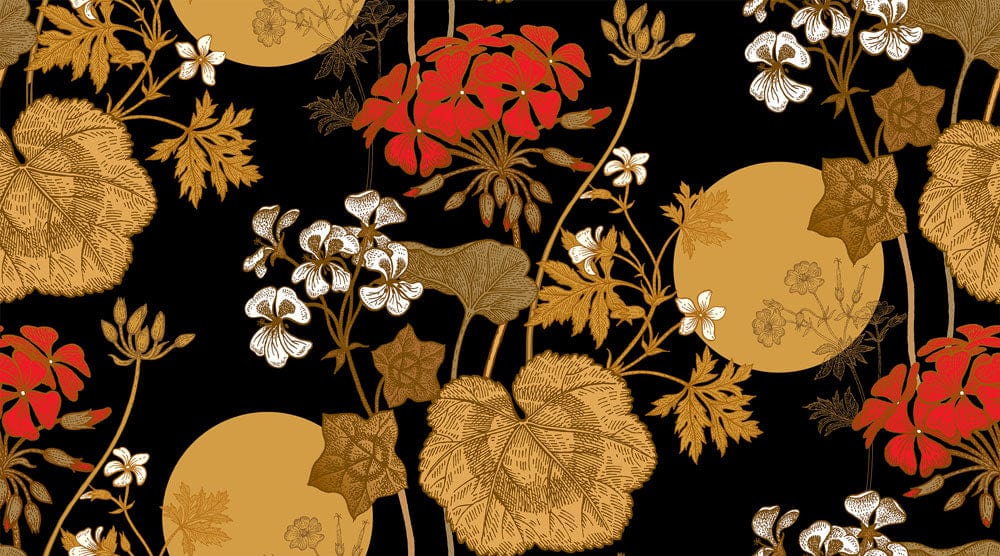 Eleva il tuo spazio con questa carta da parati di lusso che presenta audaci fiori dorati su uno sfondo nero profondo. Perfetta per creare una parete d'impatto o un ambiente sofisticato, i suoi accenti dorati scintillanti e i dettagli intricati dei fiori offrono un mix di eleganza e modernità.