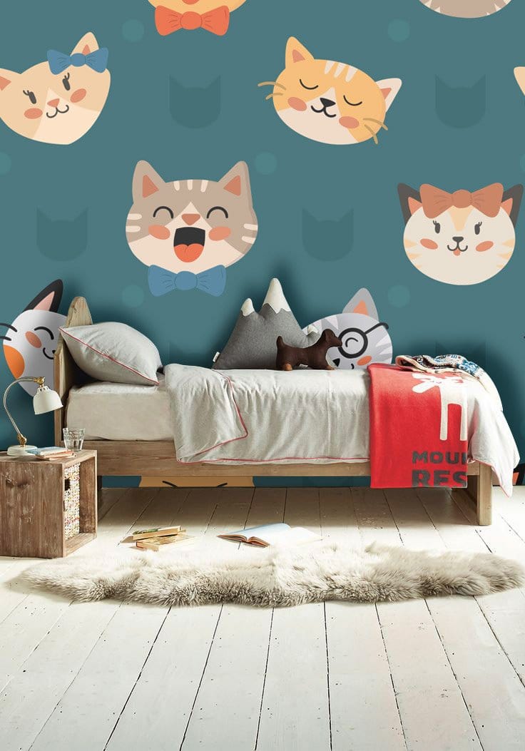 Illumina qualsiasi stanza con la nostra carta da parati Cute Cat Cartoon Pattern, perfetta per aggiungere un tocco di fantasia e giocosità. Ideale per asili, camere per bambini o spazi abitativi giocosi, questa carta da parati presenta una serie di affascinanti facce di gatti su uno sfondo teal calmante.