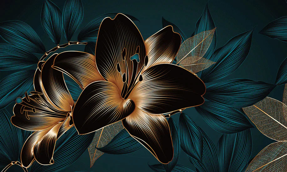 Concediti il lusso della nostra carta da parati Elegant Gold Floral Dark, perfetta per creare un'atmosfera sofisticata. I suoi straordinari elementi botanici dorati su uno sfondo profondo e scuro danno un tocco opulento a qualsiasi spazio, rendendola un'aggiunta senza tempo al tuo arredamento domestico.