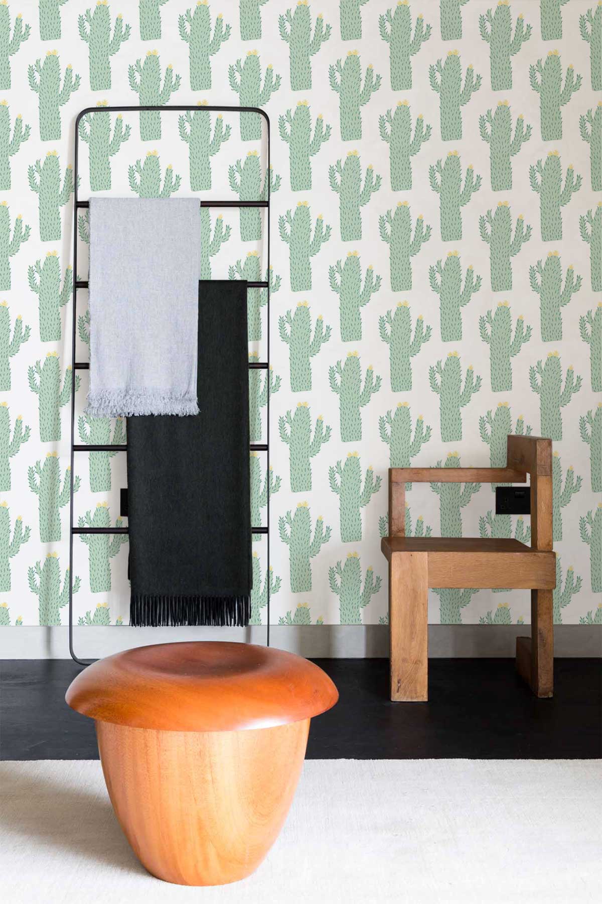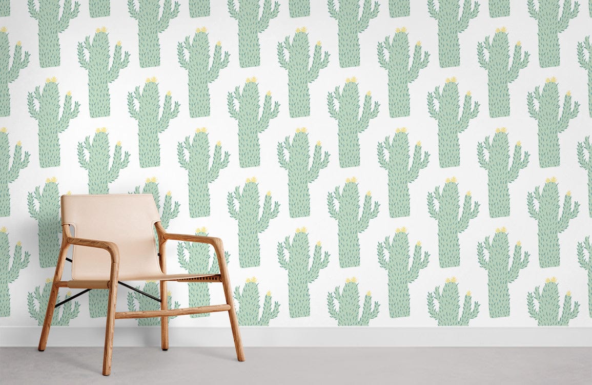 Trasforma il tuo spazio con il nostro vivace Wallpaper con Motivo Cactus Verde. Perfetto per aggiungere un tocco della resilienza e della bellezza della natura, questo wallpaper presenta affascinanti motivi di cactus con delicati fiori gialli, ideale per qualsiasi stanza che cerca un'atmosfera giocosa ma sofisticata.