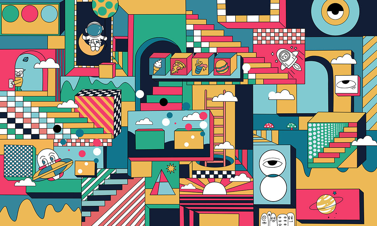 Energia l'immaginazione di tuo figlio con la nostra vivace e giocosa carta da parati Colorful Abstract Geometric Kids Wallpaper. Perfetta per creare un ambiente allegro, questa carta da parati presenta una gamma di colori audaci e forme fantasiose che ispirano creatività e gioia in qualsiasi stanza per bambini o area giochi.