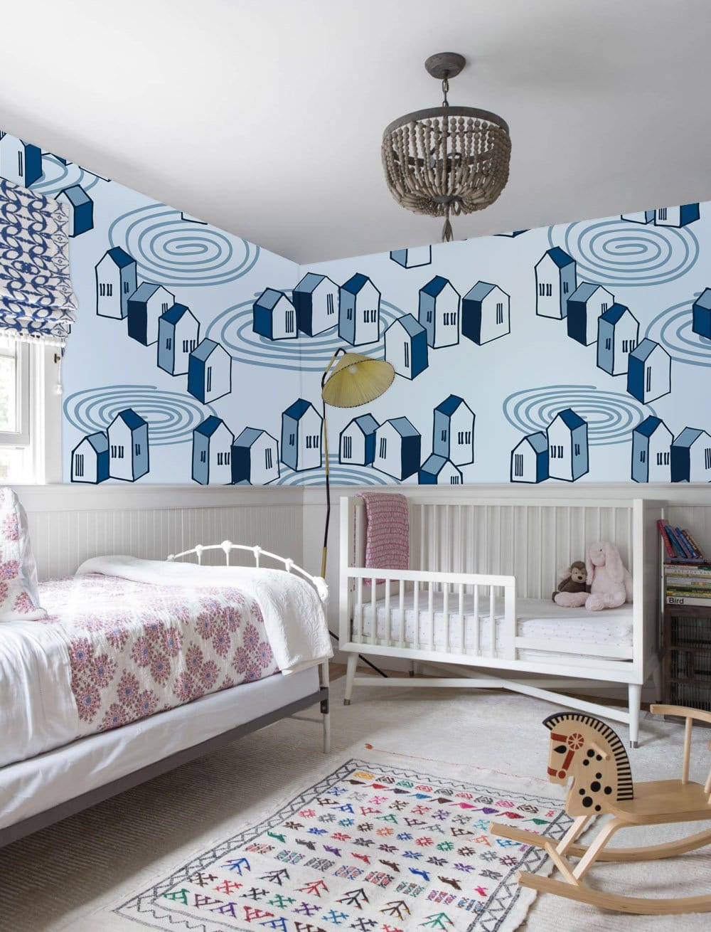 Trasforma il tuo spazio con la nostra carta da parati Blue Abstract Geometric Houses, che offre un'estetica moderna e vivace a qualsiasi stanza. Il suo motivo giocoso crea uno sfondo unico e dinamico, perfetto per un tocco artistico e contemporaneo.