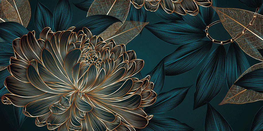 Abbraccia la sofisticatezza con la nostra Wallpaper Ever Metallic Gold Floral Dark. La perfetta fusione di tonalità verde scuro con lussuosi riflessi dorati aggiunge un tocco opulento a qualsiasi spazio. Ideale per creare una parete d'accento che cattura l'attenzione e aggiunge profondità al tuo interior.