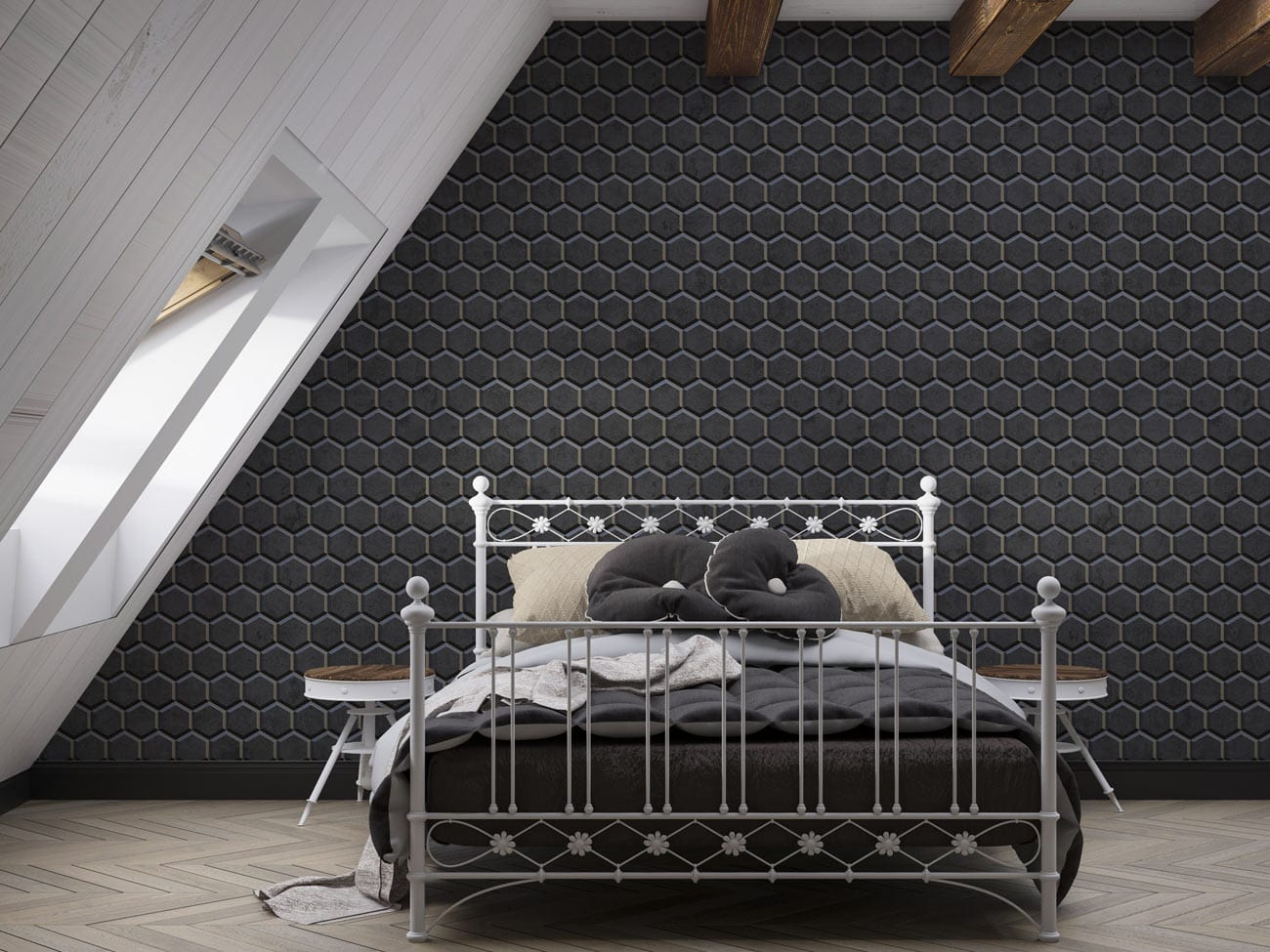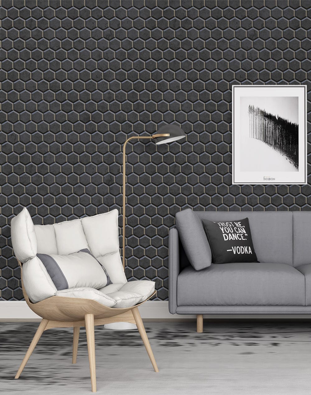 Eleva il tuo interno con la nostra carta da parati Modern Hexagonal Geometric Black, perfetta per creare un'affermazione elegante e audace. La sua tonalità scura e il motivo contemporaneo si adattano a varie estetiche di design, aggiungendo profondità a qualsiasi spazio.