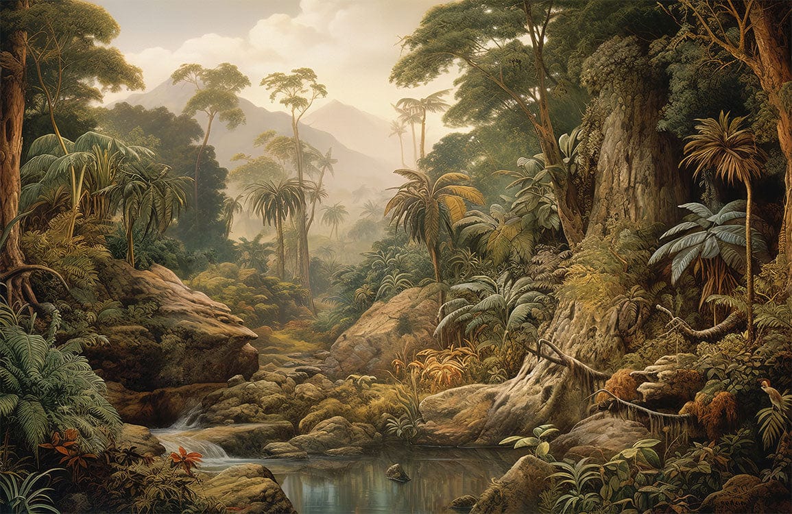 Trasforma qualsiasi stanza con la nostra carta da parati Tropical Jungle Waterfall, che presenta una lussureggiante vegetazione e sereni elementi d'acqua. Questo carta di alta qualità offre un look tranquillo, ispirato alla natura, perfetto per creare un rifugio pacifico nella tua casa.