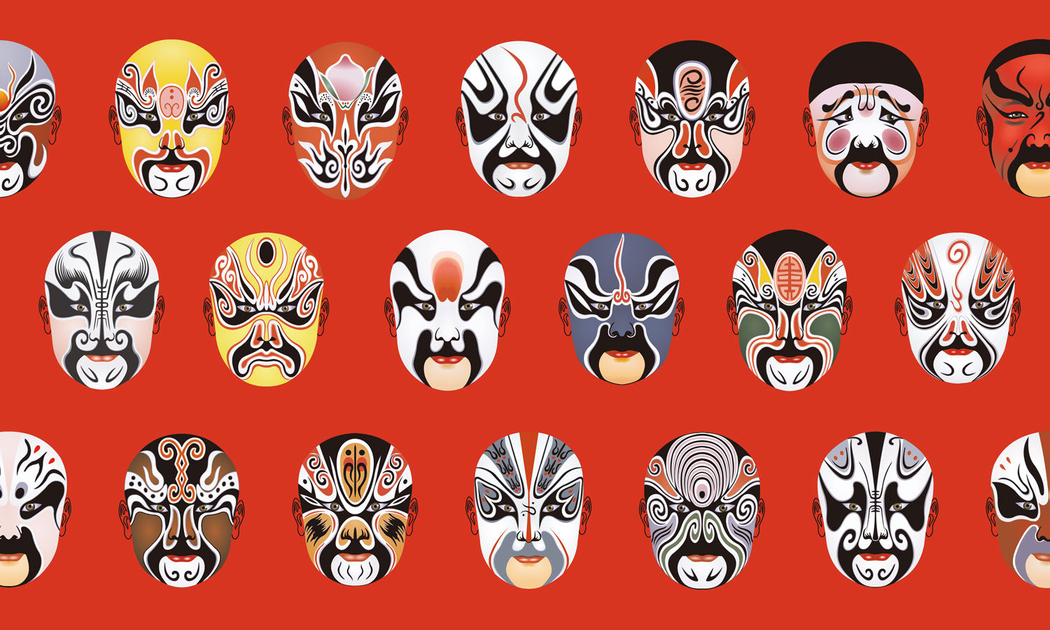 Immergiti nella cultura con il nostro vivace Carta da parati Ever Wallpaper con maschere dell'opera cinese. Perfetta per creare un'affermazione drammatica in qualsiasi stanza, questa carta da parati presenta maschere tradizionali dell'opera di Pechino dettagliate e colorate su uno sfondo rosso sorprendente. Trasforma il tuo spazio in una scena teatrale.