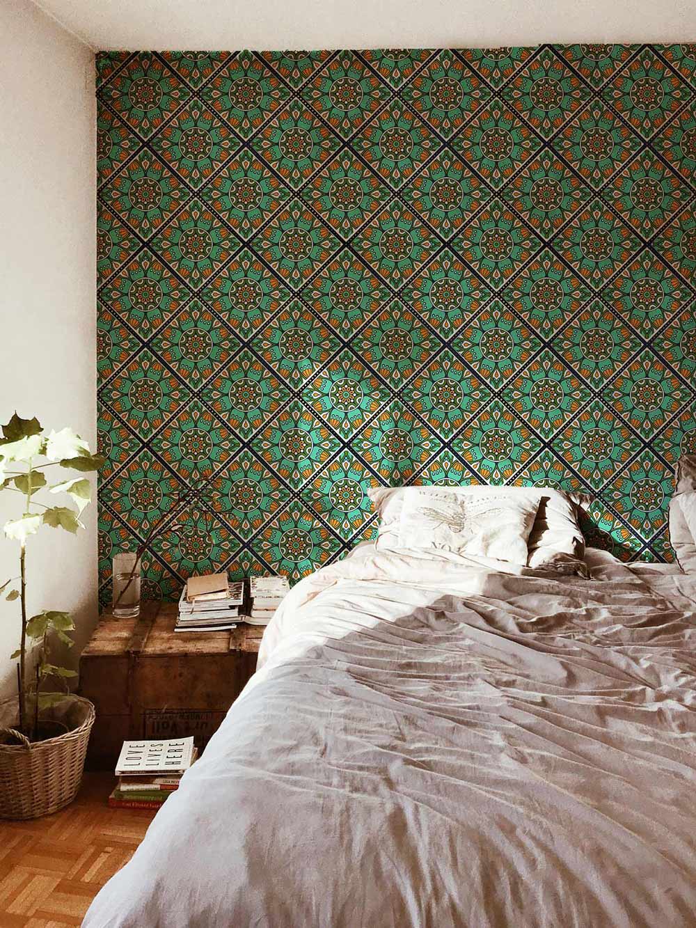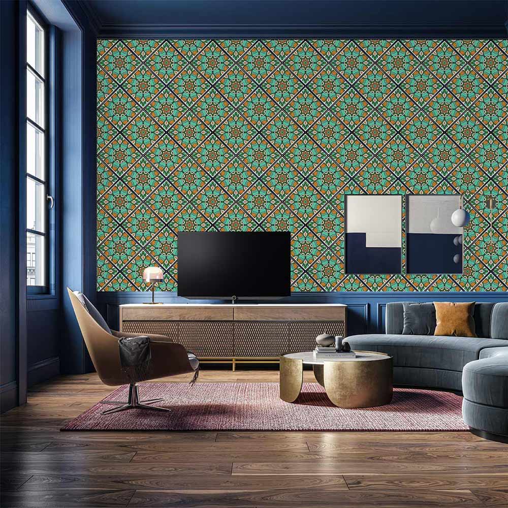 Rivitalizza il tuo spazio con la nostra carta da parati Geometric Vintage Green Floral Wallpaper. Questa carta da parati presenta un design classico, che unisce motivi floreali verdi a schemi geometrici per creare un aspetto senza tempo perfetto per qualsiasi stanza.