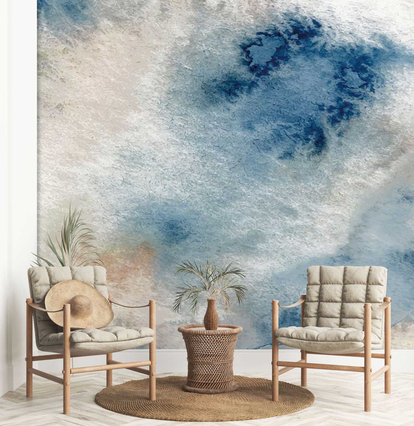 Elevate your space with our Abstract Watercolor Blue Cloud Wallpaper, a blend of serene blues and soft, airy whites embodying tranquility. Ideal for creating a peaceful ambiance in any room, it's perfect for those seeking a modern yet timeless wall covering.