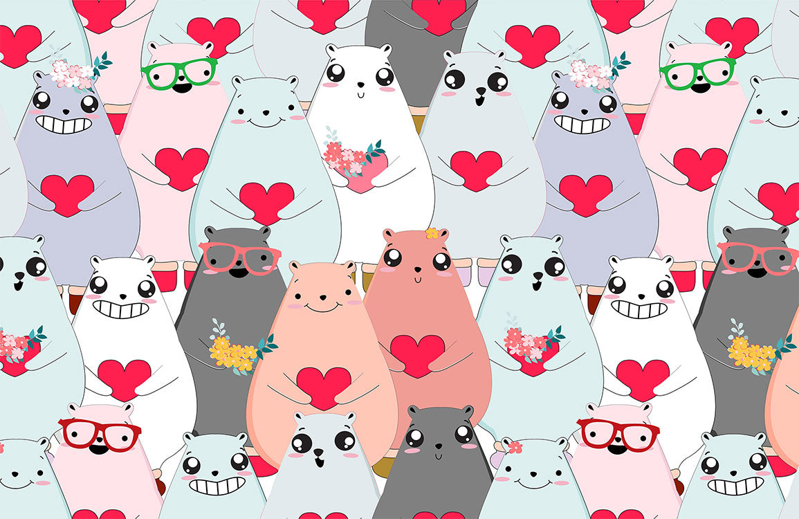 Brighten up your child's room with our whimsical animal pattern wallpaper, featuring a playful assembly of cute cartoon creatures. Perfect for stimulating imagination and adding a touch of joy to any nursery or playroom.